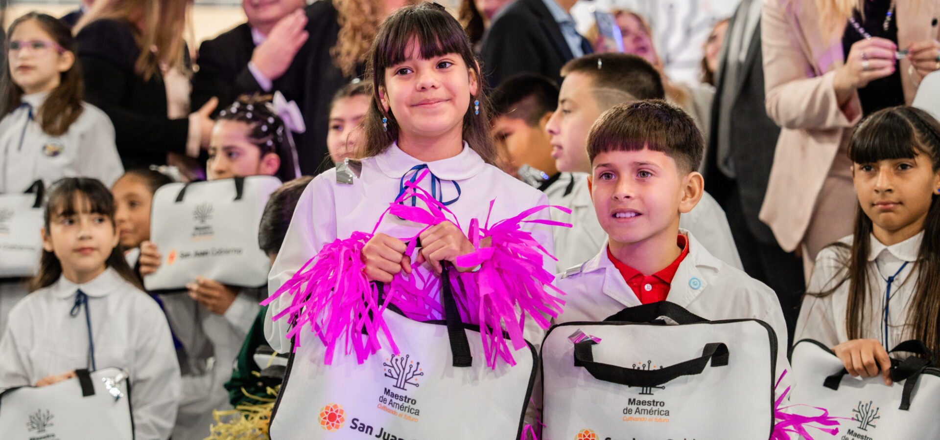 Se entregaron los primeros netbooks a 756 alumnos de quinto y sexto grado de ocho escuelas del departamento de Pocito, lo que permitió que cada alumno y cada alumna tuviera acceso a una herramienta de aprendizaje personal.