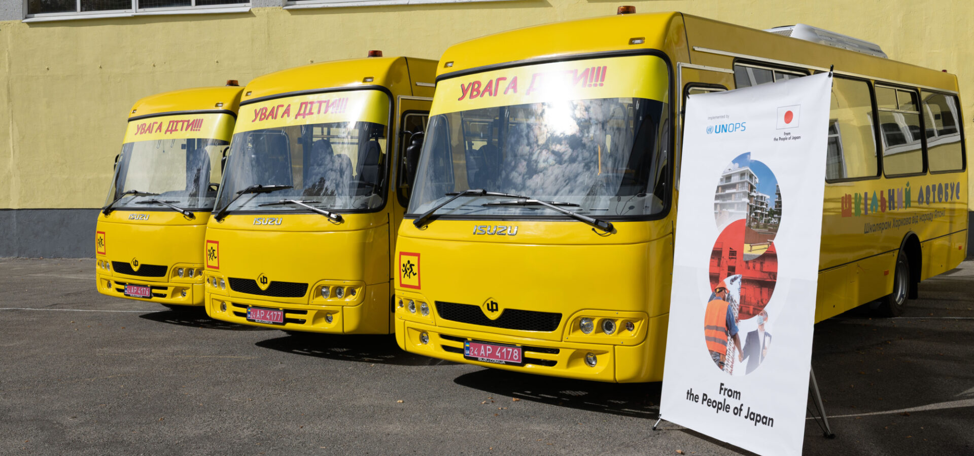 - Three school buses have been officially handed over to the city of Kharkiv in a ceremony attended by the Ambassador of Japan to Ukraine and the Mayor of Kharkiv. The buses will transport children and school staff to safe education facilities across the city, strengthening access to education even with the ongoing security threats in place.