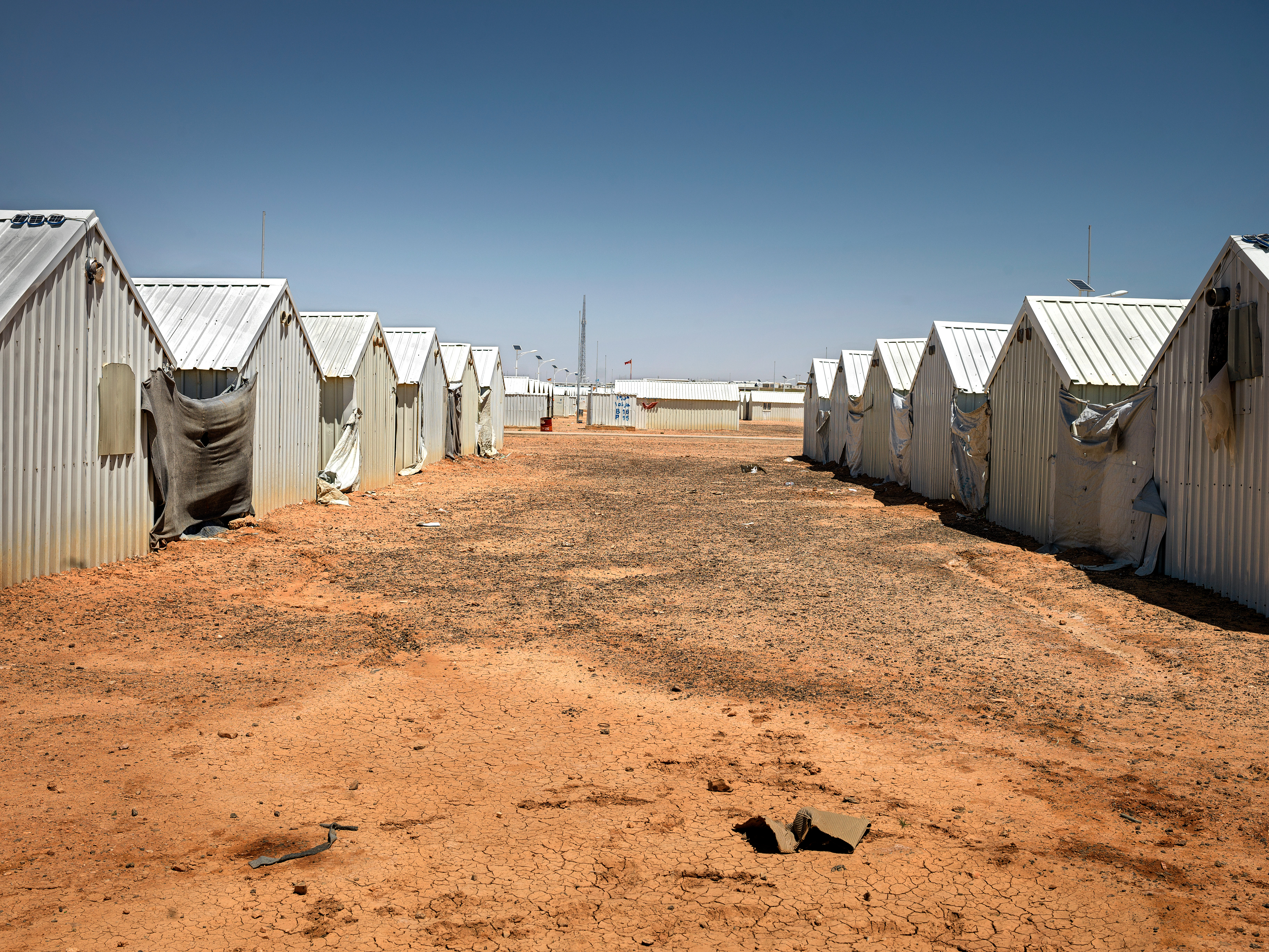 UNOPS has constructed security structures in both Azraq and Za'atari Refugee Camps, contributing to the safety and security of camp residents. UNOPS has integrated renewable sources of energy into these projects—in Azraq, UNOPS constructed what was at the time the largest off-grid photovoltaic system in Jordan, providing constant electricity to security facilities. In Iraq, UNOPS provided IDPs with solar-powered lamps and mobile phone charging kits, with support from the Saudi Humanitarian Fund for Iraq. Solar lights and water heaters were also installed in communal facilities.